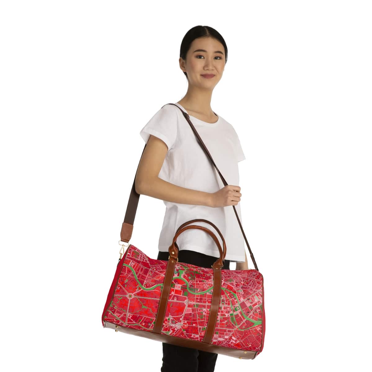 Bei dieser Reisetasche, die du mit unserer EMOTYPIC KI individuell gestalten kannst, dreht sich alles um Stil. Aus hochwertigem, wasserdichtem Material gefertigt, ist sie ein äußerst strapazierfähiges Mittel, um deine wichtigsten Utensilien überallhin zu transportieren. Mit mehreren Fächern, einem robusten Tragegriff und einem verstellbaren Schultergurt ist sie der perfekte Begleiter für alle deine Abenteuer.